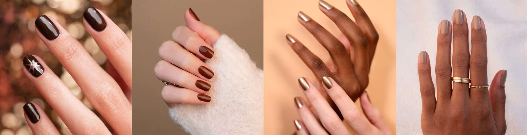 Pour une manucure automnale plus affirmée, choisissez une forme d’amande ou de stilettos avec un marron foncé comme Clove. Une manucure de caractère à la fois sophistiquée et enveloppante : idéale pour les soirées d’automne.