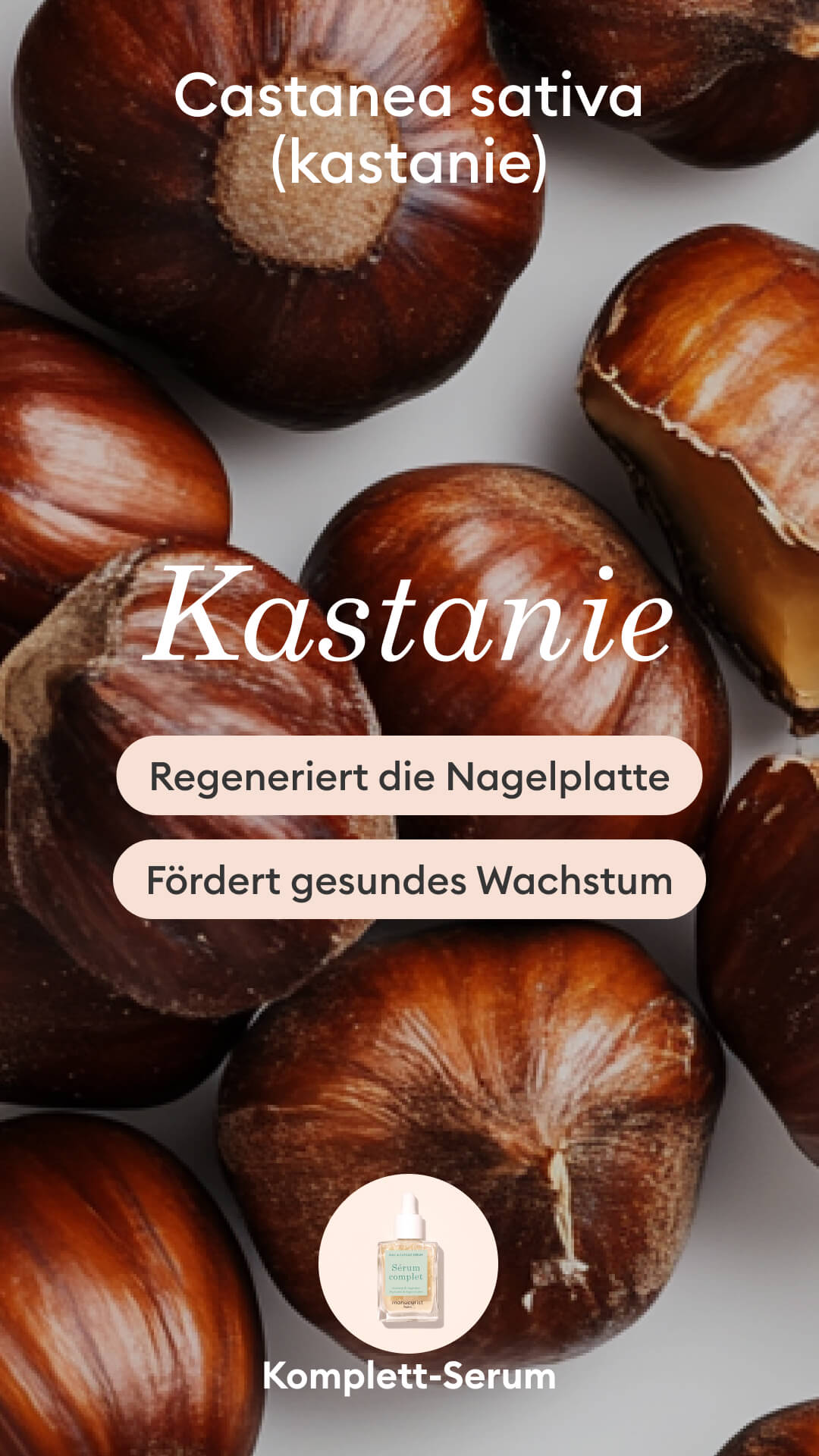 - Pflanzliches Glycerin und Kastaniensamenextrakt versorgen die Nägel den ganzen Tag über mit Feuchtigkeit