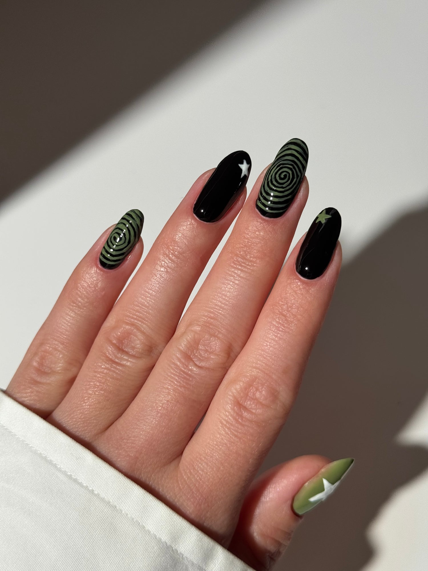 Hypnotische Nägel mit nachtdunklen Vibes.