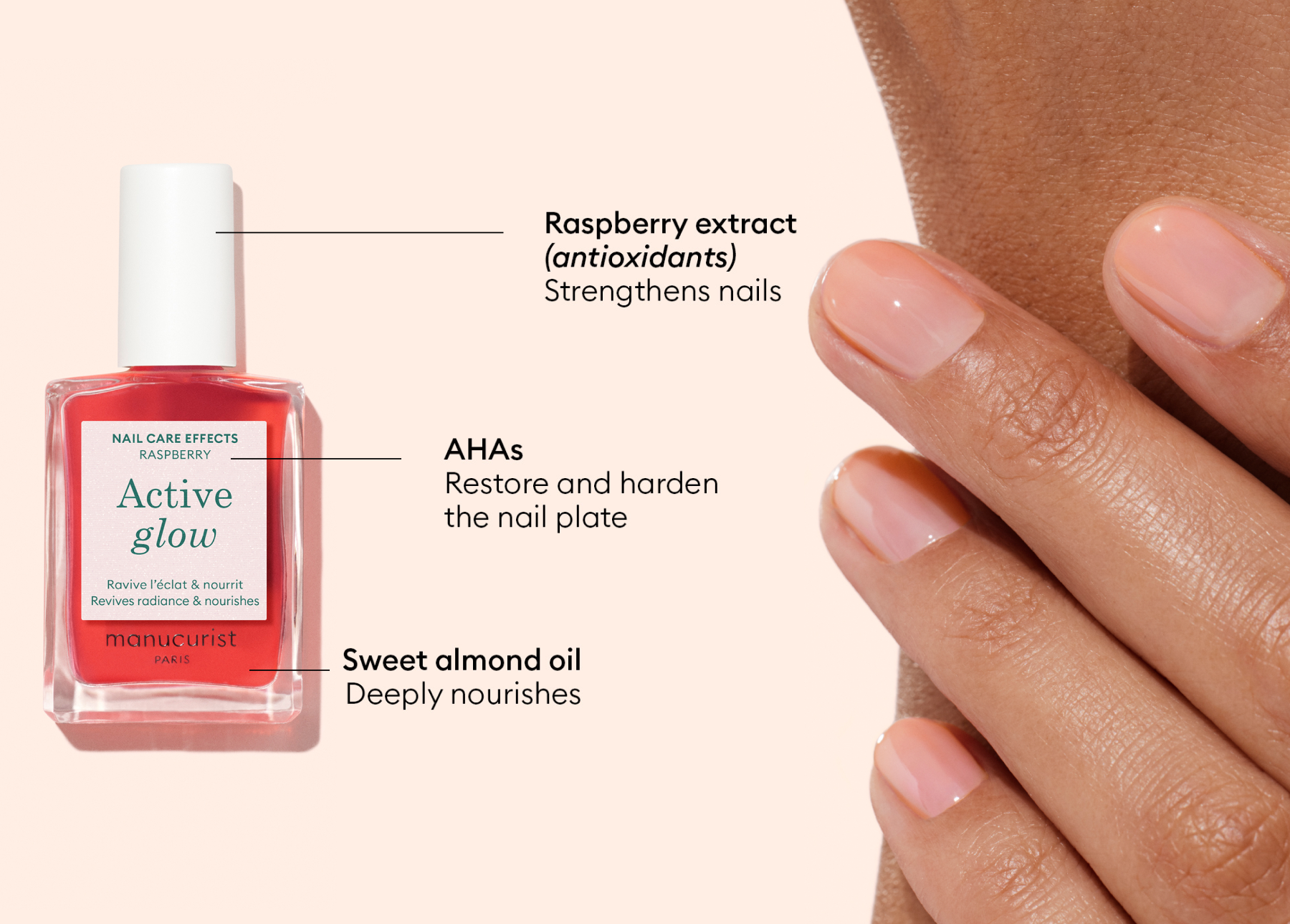If you have very damaged nails, you can absolutely combine the SOS treatment base with our Active Glow™ hybrid polish/treatment for an immediate "healthy glow" effect. Otherwise, Active Glow™ already contains active nail care ingredients (raspberry extracts with soothing and regenerating properties, AHAs that are particularly effective in restoring and revitalizing even the most fragile nails, and sweet almond oil to intensely nourish nails and cuticles). It's a true 2-in-1 treatment and beautifier.