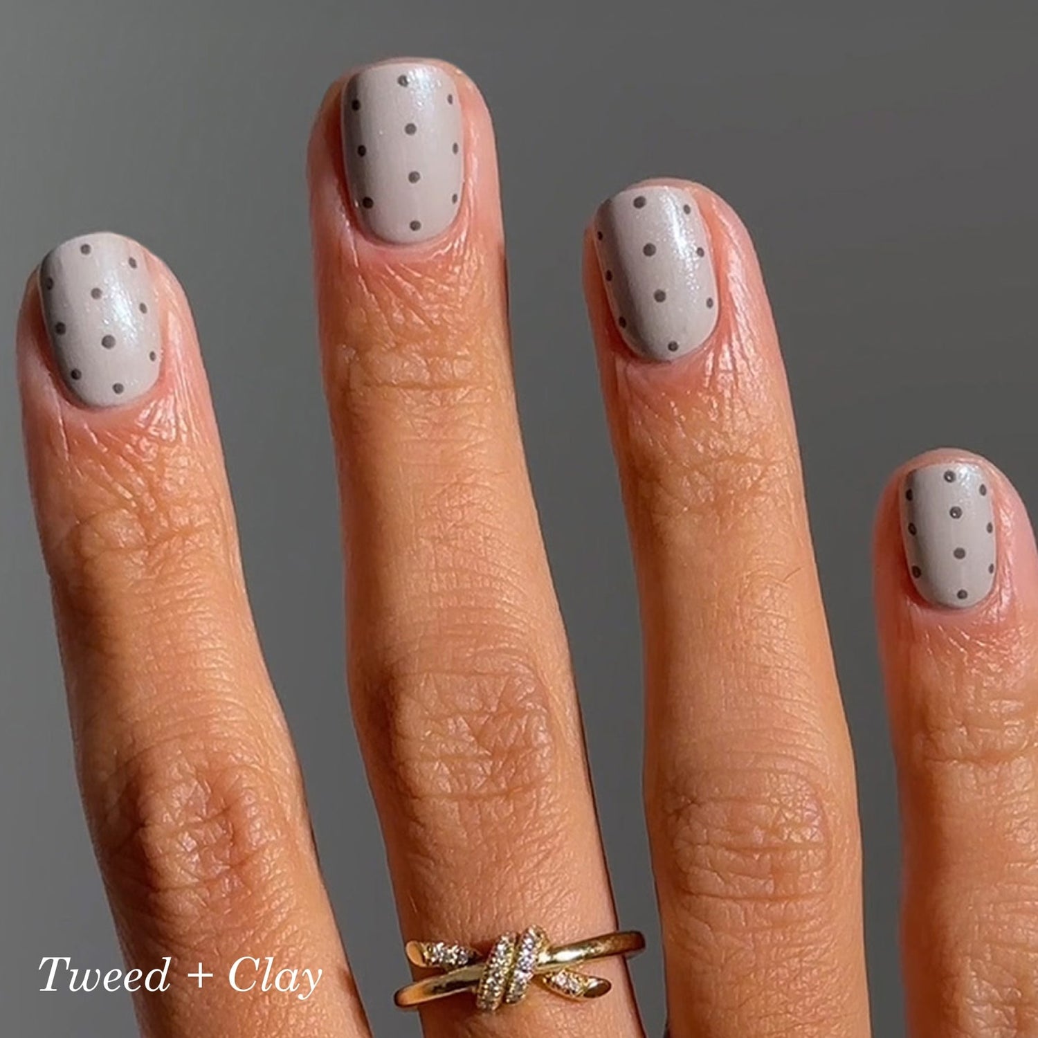 Tone-on-tone polka dots in Tweed & Clay. Bright and breezy and easy to wear.