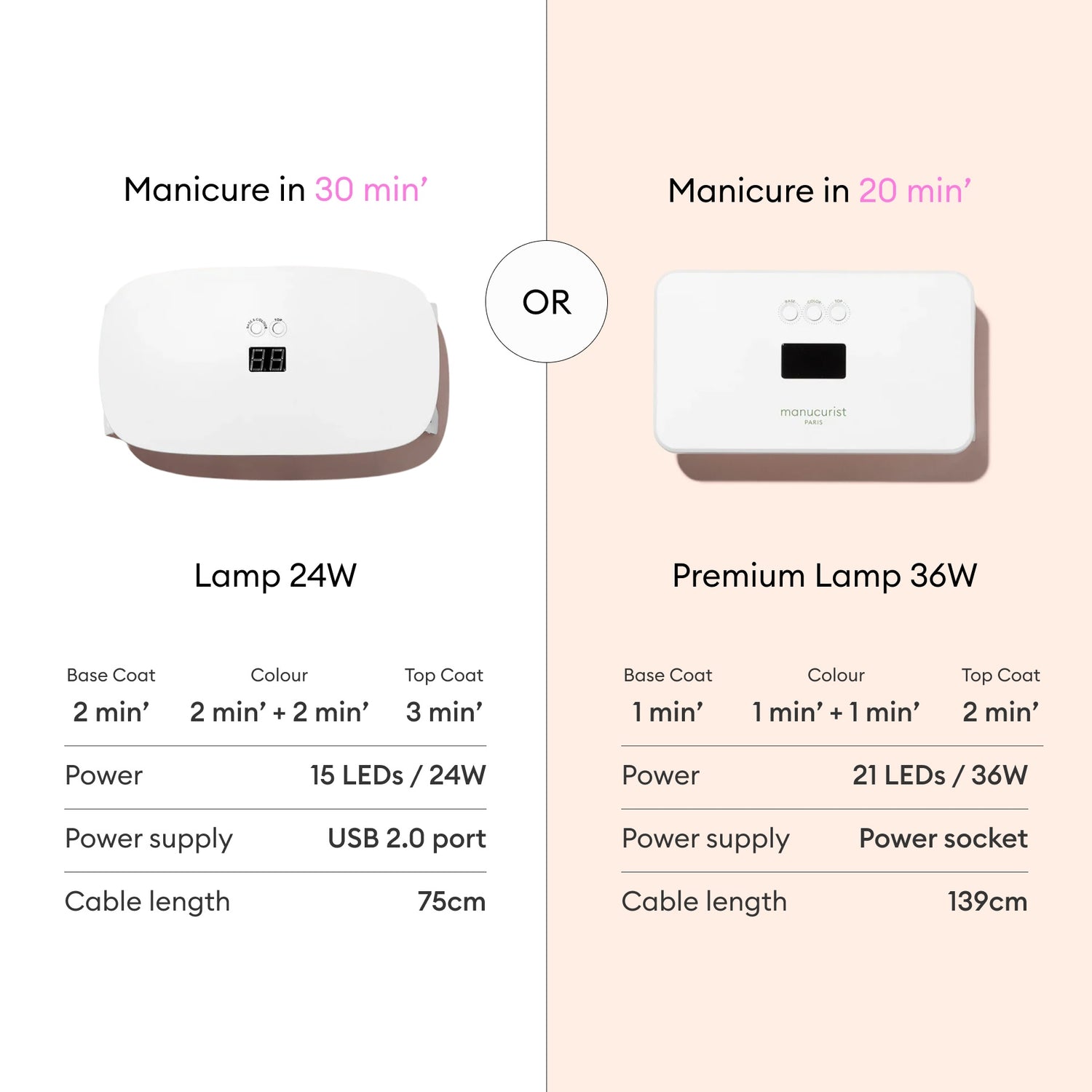 It dries instantly: using an LED lamp with an output of at least 24W at a frequency that is less harmful to nails than UV lamps!