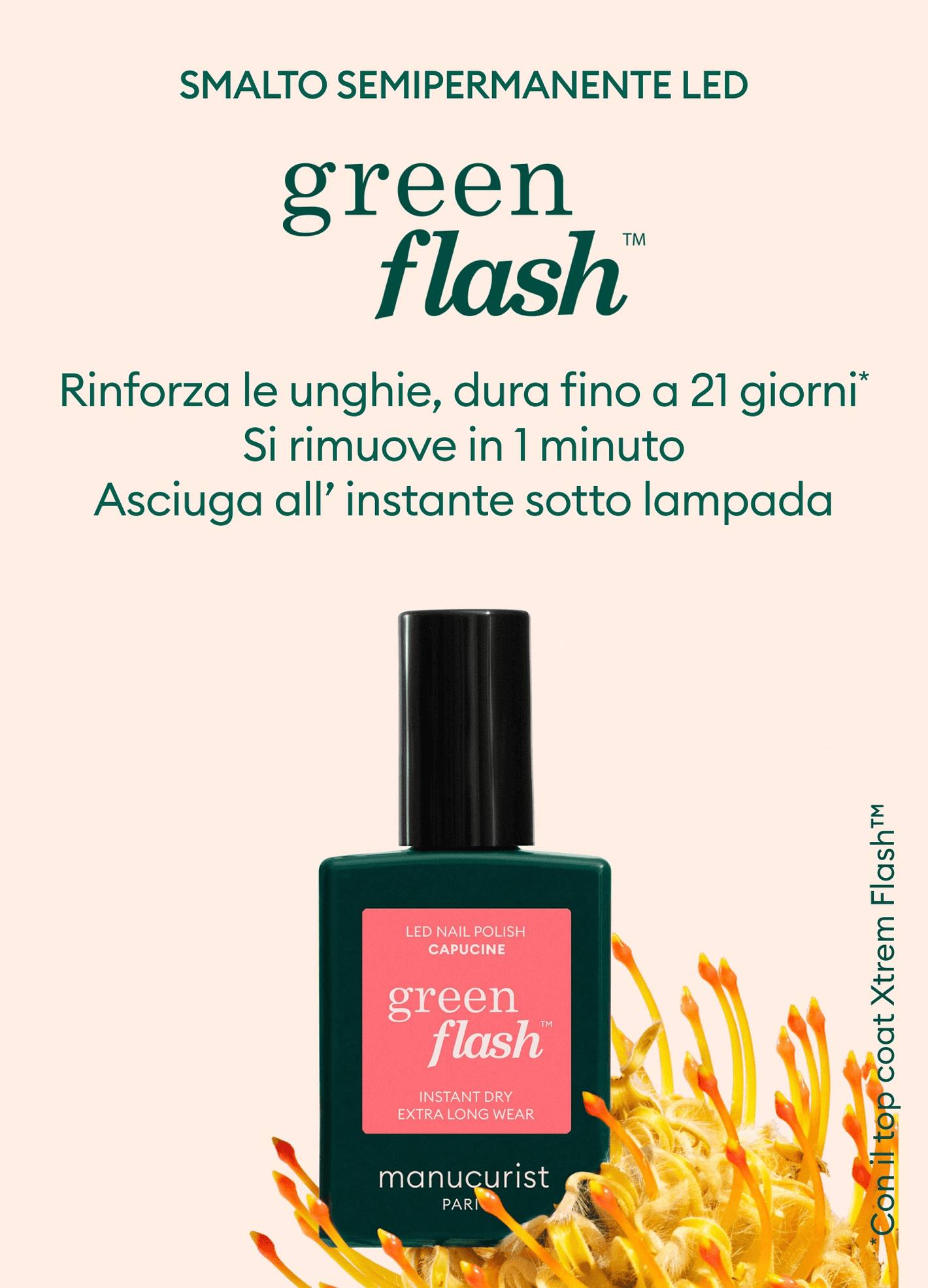 Green Flash è uno smalto semipermanente clean che si può mettere a casa.
