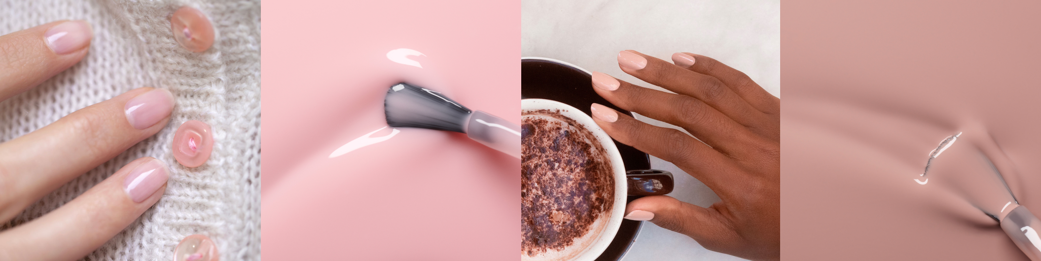 Lo smalto rosa pastello opaco con sottotono beige per una manicure nude perfetta, adatta a tutte le tonalità di pelle, per un effetto caramella.