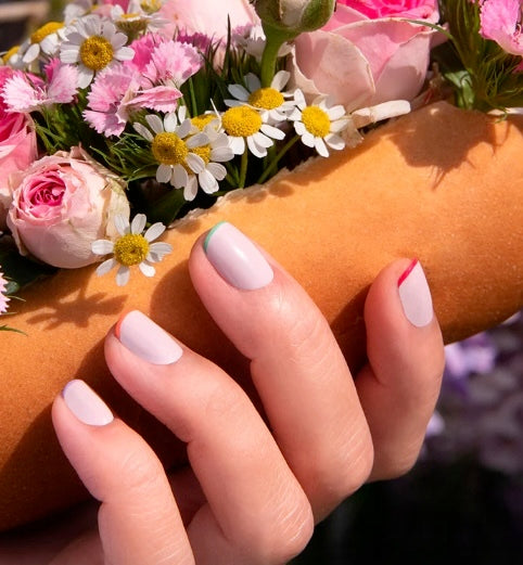 Il tocco French in versione pastello! Scegli il tuo arcobaleno di colori da disporre su una base delicata per un look fresco, elegante e ultra luminoso.