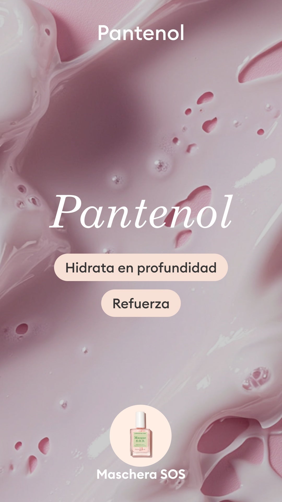 - Pantenolo + ingredienti di origine vegetale per idratare in profondità