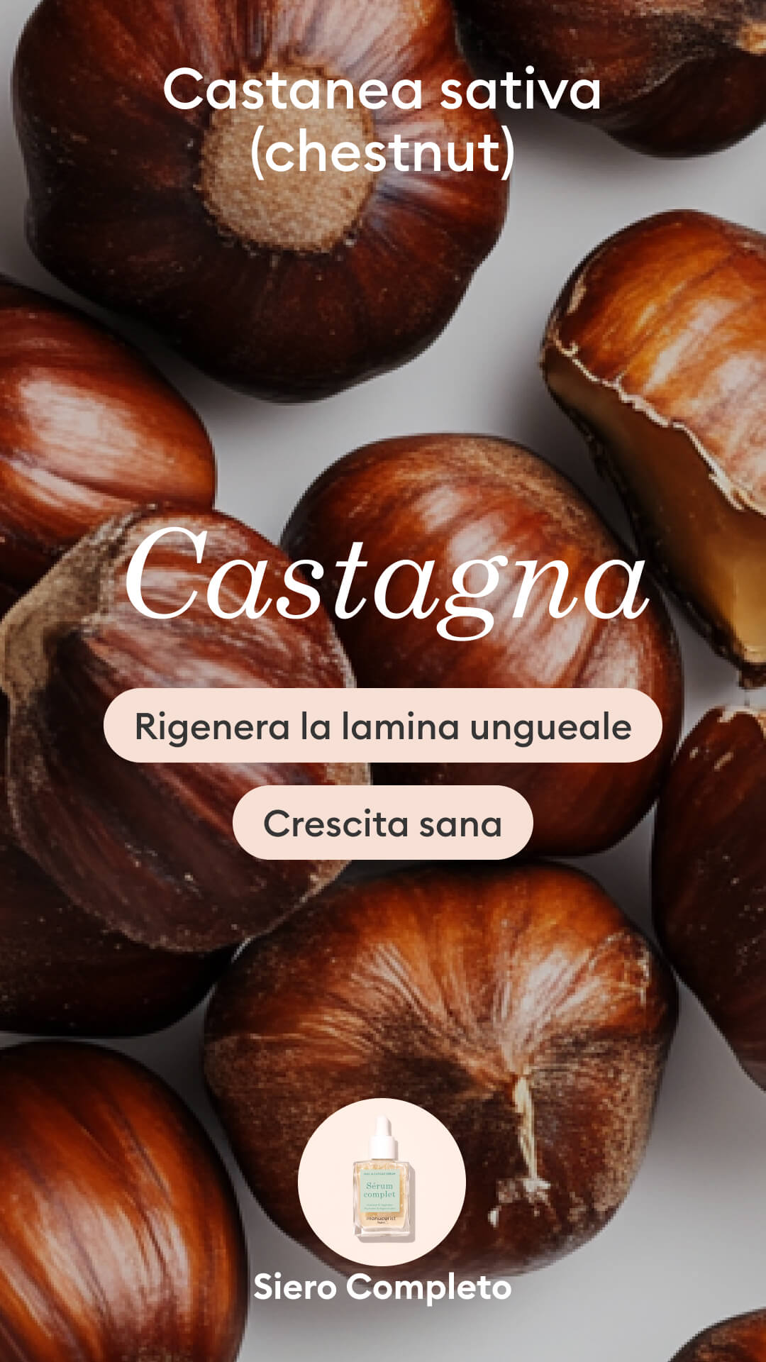 - Glicerina vegetale ed estratti di semi di castagna per mantenere le unghie idratate da mattina a sera"
