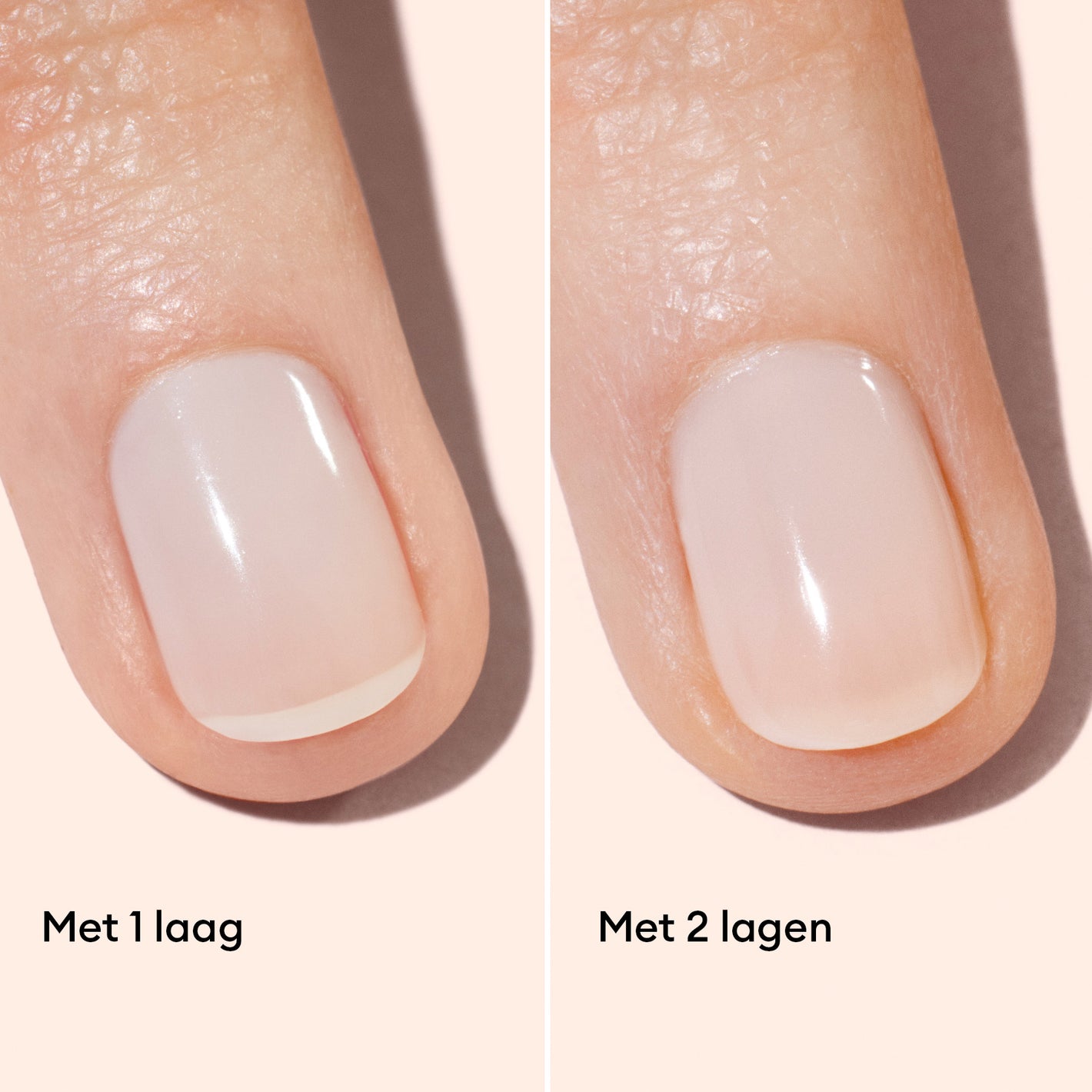 - 1 laag voor een subtiel en natuurlijk laagje, als een vleugje licht op je nagels