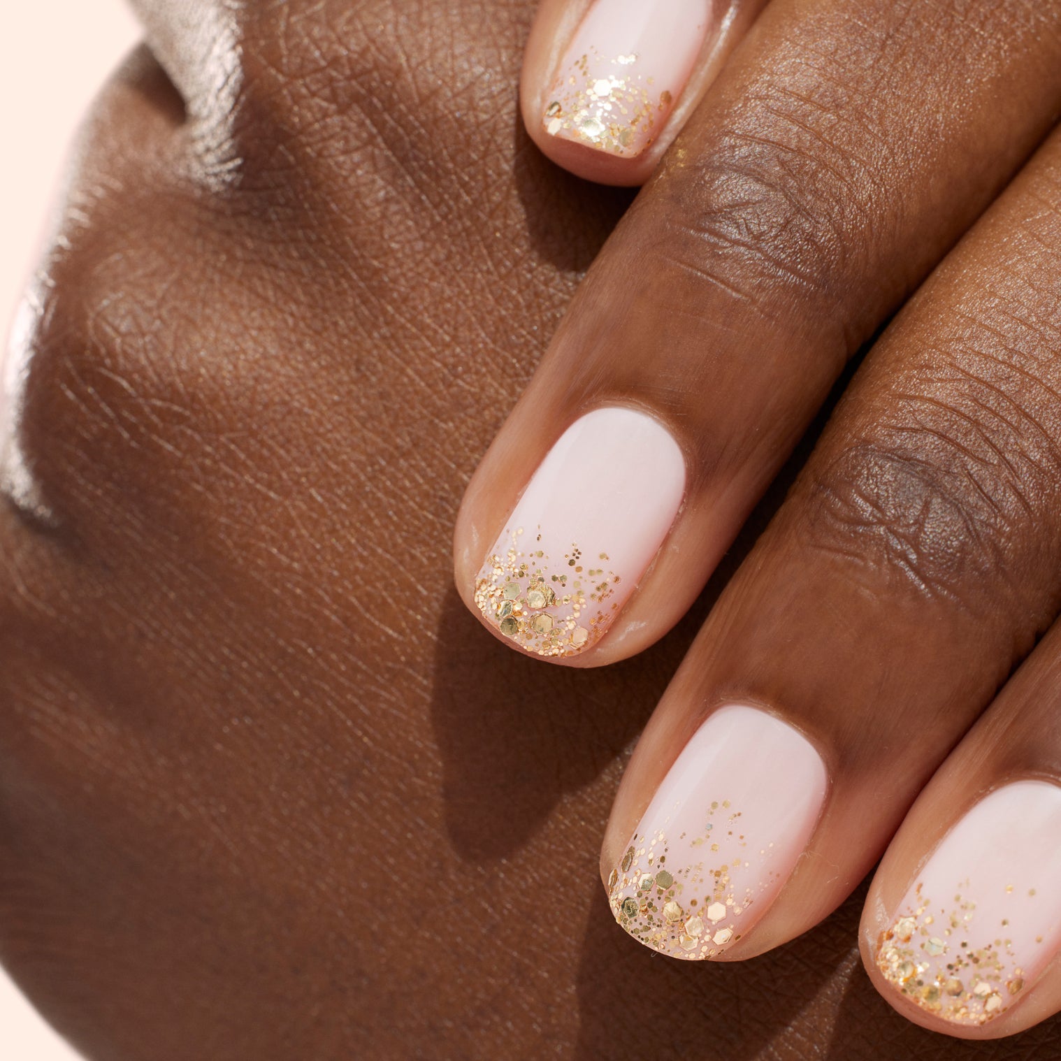 Avant que le vernis soit sec, tapotez les paillettes pour créer un dégradé