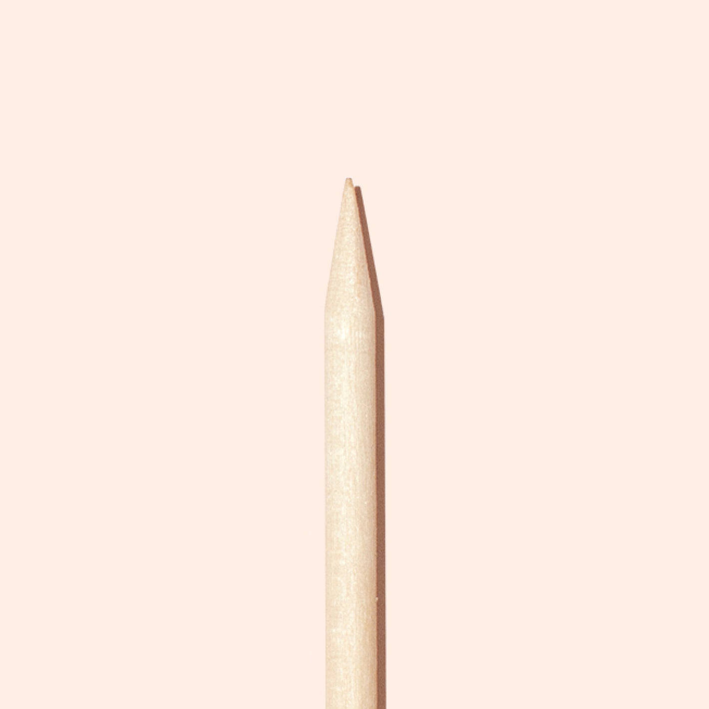 Indispensable de la préparation de l'ongle, le Bâton de buis possède deux embouts pour éliminer efficacement les résidus du dessous de l'ongle (embout pointe) et délicatement repousser les cuticules (embout plat).