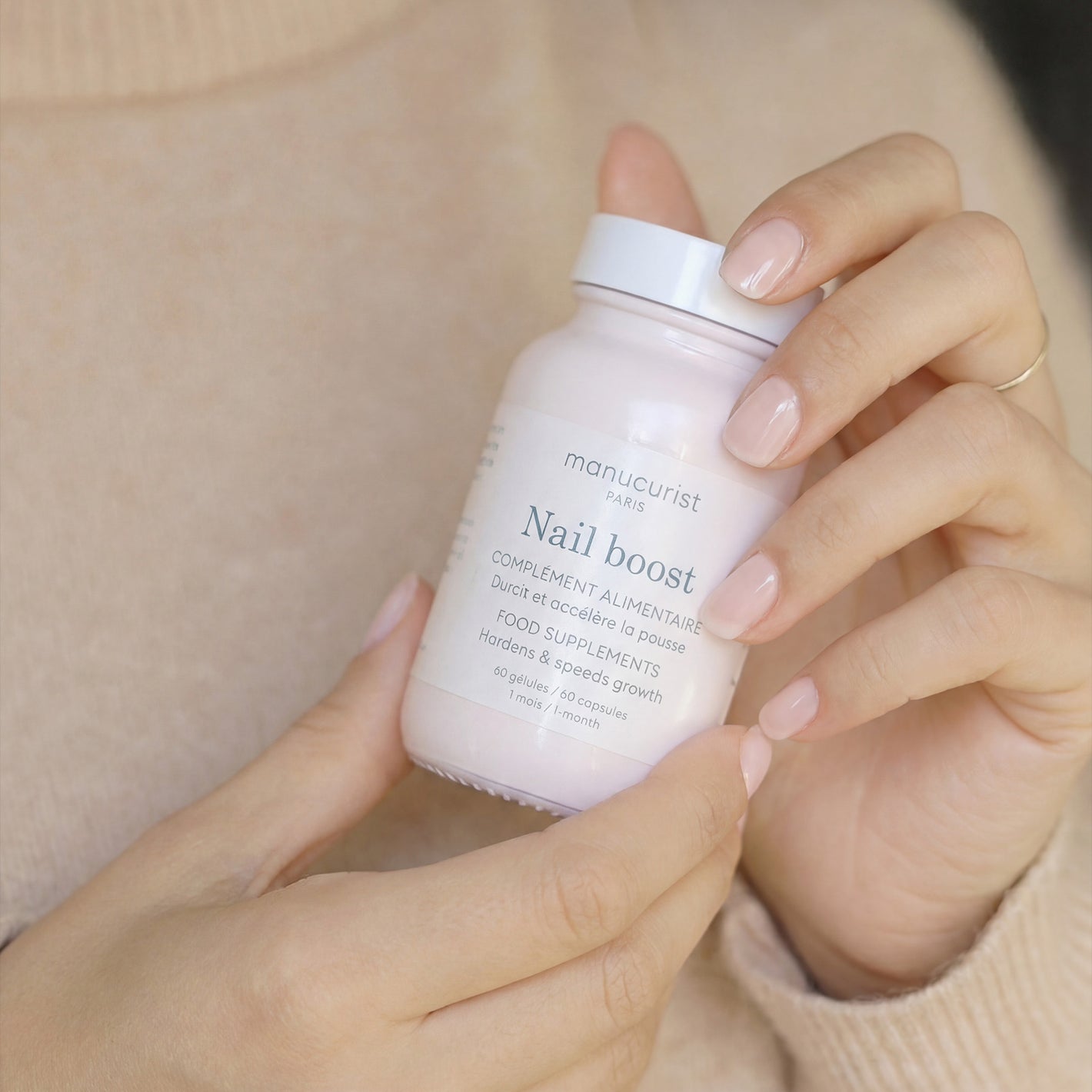Concentrés en vitamines et en actifs naturels, les compléments alimentaires Nail Boost durcissent et accélèrent la pousse des ongles.